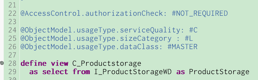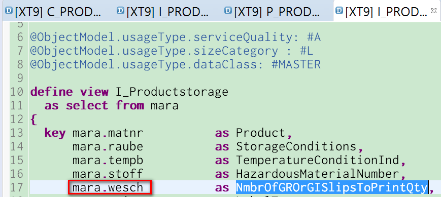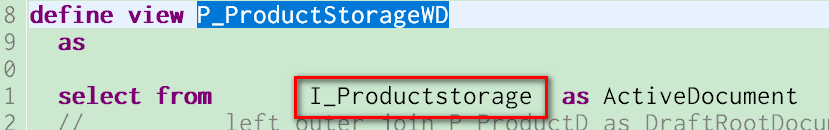 C_PRODUCTSTORAGE就是CDS view的名称。打开它的定义,发现它从另一个CDS view I_ProductStorageWD取数据,那么再打开I_ProductStorageWD: