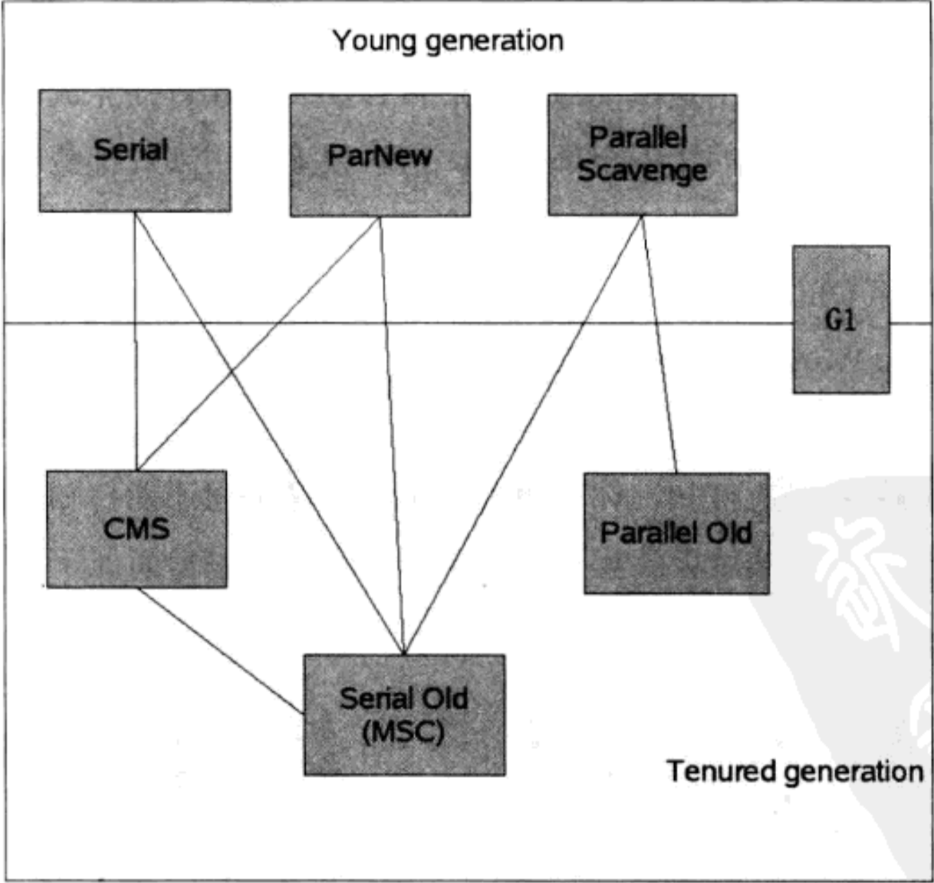 Java虚拟机规范中对垃圾收集器应该如何实现并没有任何规定,因此不同的厂商、不同的版本的虚拟机所提供的垃圾收集器都可能会有很大的差别,并且一般都会提供参数供用户根据自己的应用特点和要求组合出各个年代所使用的收集器。Sun HotSpot虚拟机1.6板虚拟机所包含的收集器如下所示: