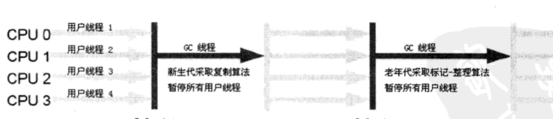 多线程版本的Serial收集器,工作原理示意图: