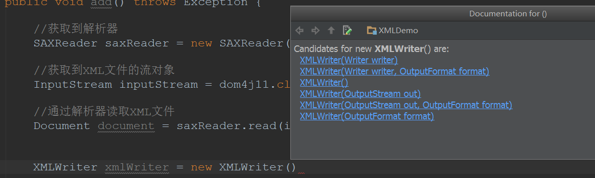 dom4j提供了XMLWriter供我们对XML文档进行更新操作,一般地创建XMLWriter的时候我们都会给出两个参数,一个是Writer,一个是OutputFormat