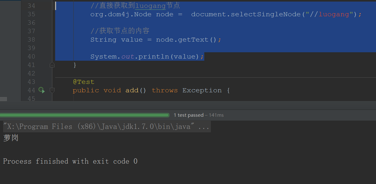 org.dom4j.Node node = document.selectSingleNode("//luogang");