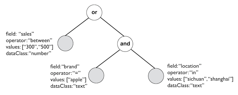 Condition Group作为根节点,可以递归嵌套Condition Group和Condition,如下图所示: