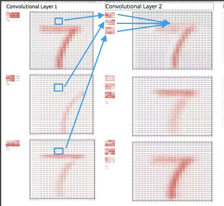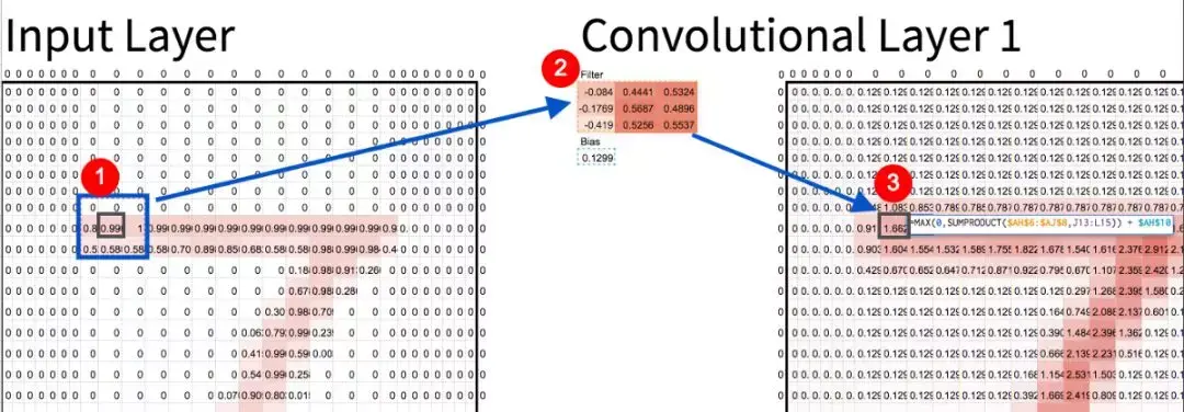 事实上,深度卷积神经网络根本不像它听起来这么可怕。本文将在谷歌表格中实现一次来证明给你看。进入演示地址,下载为 Excel 表格,然后你就可以随意编辑,看看不同层是怎样影响模型最后的预测结果的。