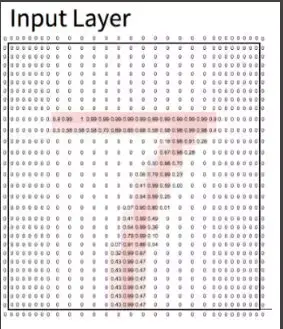 我用 MNIST 数据集训练了一个非常简单的卷积神经网络,这个数据集是用来预测有手写数字图片里的数字的。每一个图片都是 28×28 像素大小。每一个像素用 0(空白)到 1(深色)之间来表示。MNIST 是一个非常经典的数据集,常被用于各种新技术的研究,如 Geoffrey Hinton 等人的 Capsule。这个数据集非常的小所以训练起来很快,但这个数据集又有足够多的数据来展示机器学习的复杂性。这个模型的工作是预测图片里的数字是多少。每一个图片都明确的是 0-9 之间的一个数。