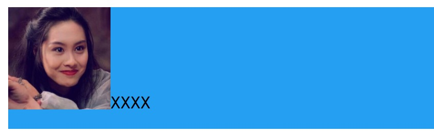 可以看到,此时图片底部的空白间隙变得更大。实际上,在wrap里面虽然只有一个img标签,但其实存在一个我们看不见的空白节点。这个特殊的空白节点与普通文节点一样,具有文字大小,行高。因此,我们可以利用普通文本来代替这个节点来观察现象。我们在图片的后面输入一串XXX。如下: