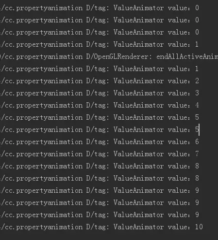Log.d("tag","ValueAnimator: " + animation.getAnimatedValue());
