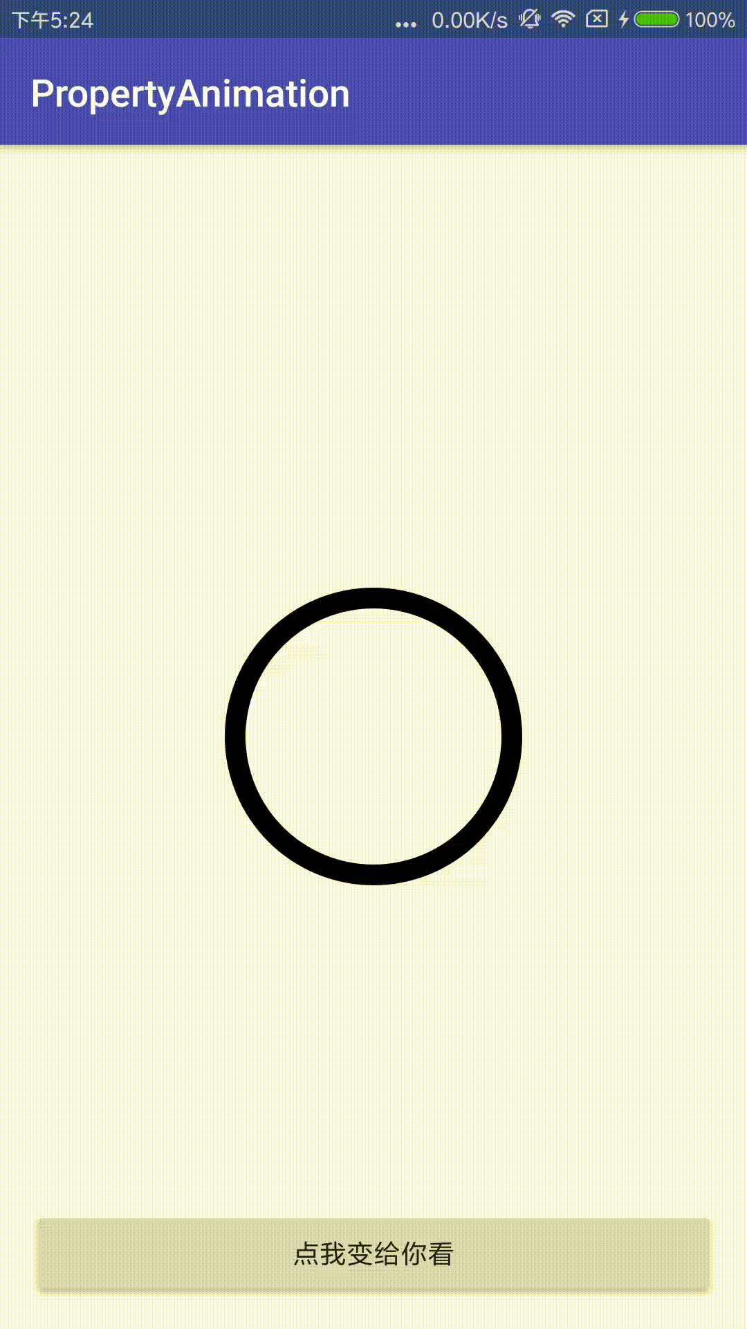 这是我们ObjectAnimator类相关的操作。ofFloat()方法传入了一个CircleView对象,传入angle参数,弧度从0到270再到0度。我们看看效果:
