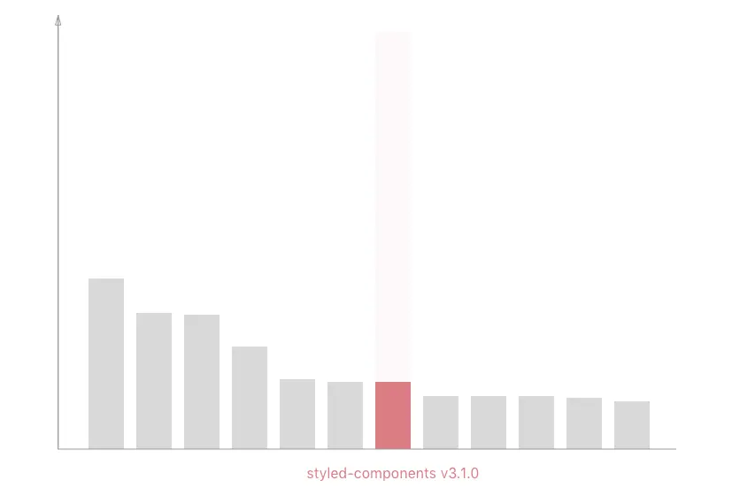 样式组件与所有其他主流的 React CSS-in-JS 框架相比(浅红色是:v3.0.2;深红色是:v3.1.0)