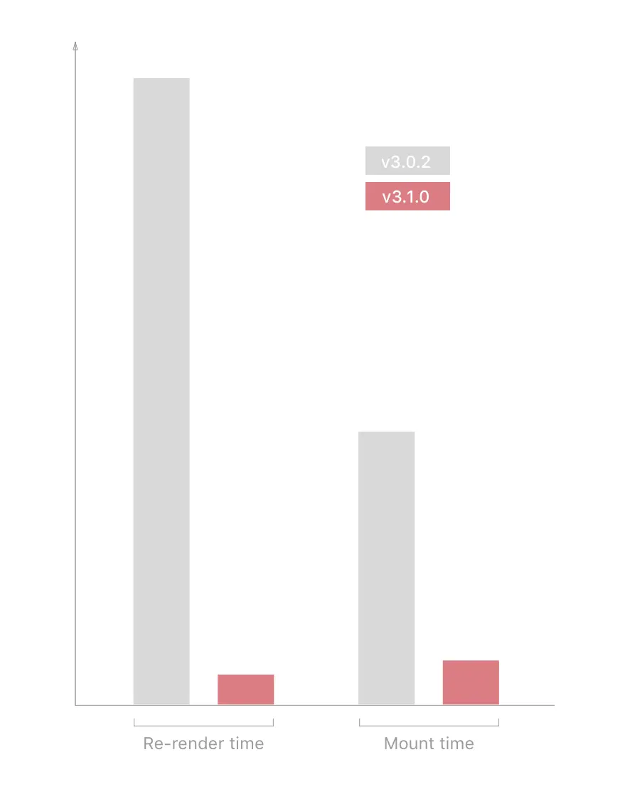 测试应用程序的初始挂载时间较之前减少了约 10 倍,重渲染的时间减少了约 20 倍!
