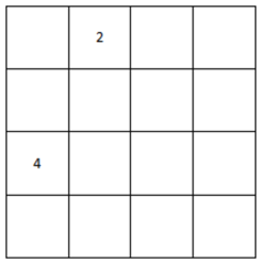 (3)游戏开始时,随机生成两个数字,2或者4,出现在矩阵中任意位置