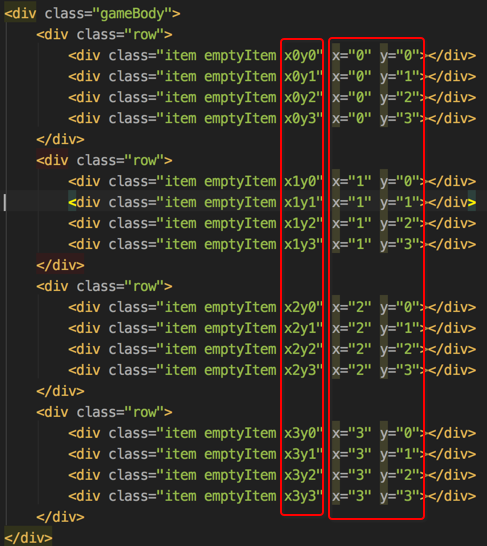 (2)在html中给每个格子添加类名及属性,来记录每个格子的位置