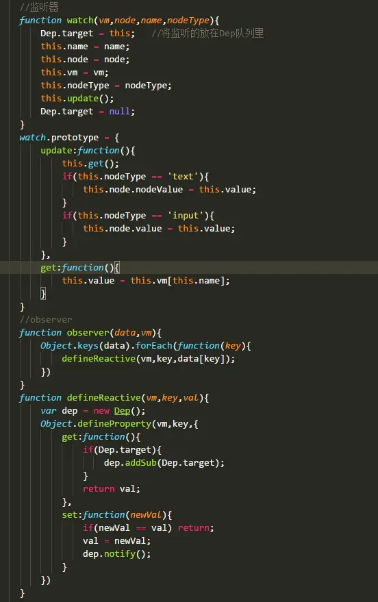 #多种方式实现MVVM,本章先讲解基于defineProperty来实现,也就是类似于实现vue的mvvm功能。本系列有3种实现方式,defineProperty(VUE),脏检查(angular),原生js实现(发布订阅者模式)