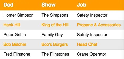 这里有一个 initial 如何被用于创建表格中的交替彩色线条的例子: