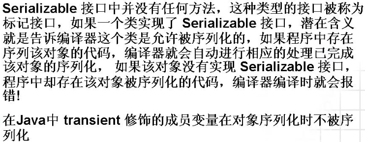 55 transient public float sscore = 0; //表示sscore成员不能被序列化,所谓不能被序列化就是指:“该成员调用ObjectOutputStream 的writeOnbject()时不会被保存,调用ObjectInputStream的readObject()方法时不会被读取”