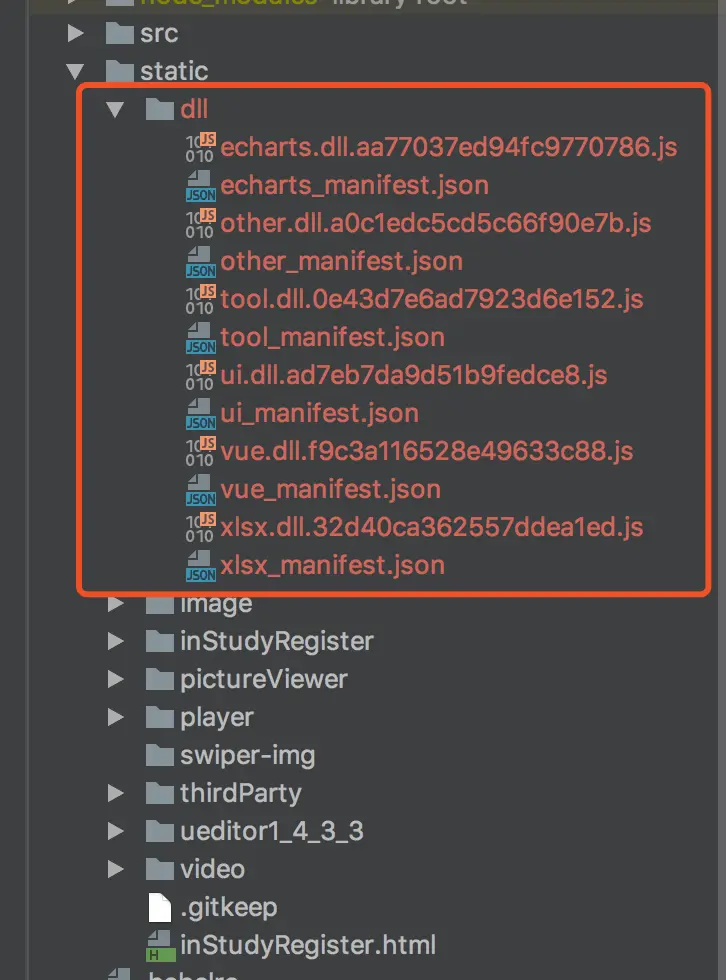 Dllplugin里的path,会输出一个vendor-manifest.json,这是用来做关联id的,打包的时候不会打包进去,所以不用放到static里