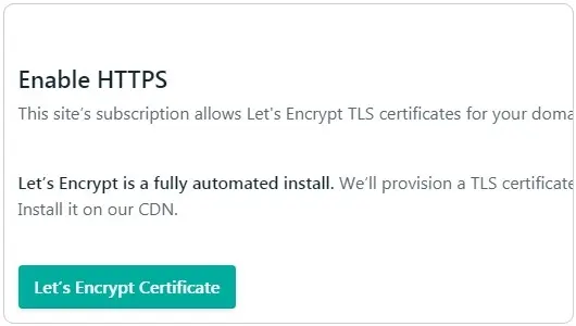 点击 Let’s Encrypt Certificate, 系统会自动签发证书给站点,若域名解析没问题就能签发成功