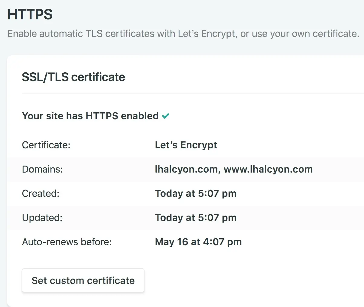 - 支持自定义域名且自定义域名支持一键开启 https(证书来自 Let’s Encrype)