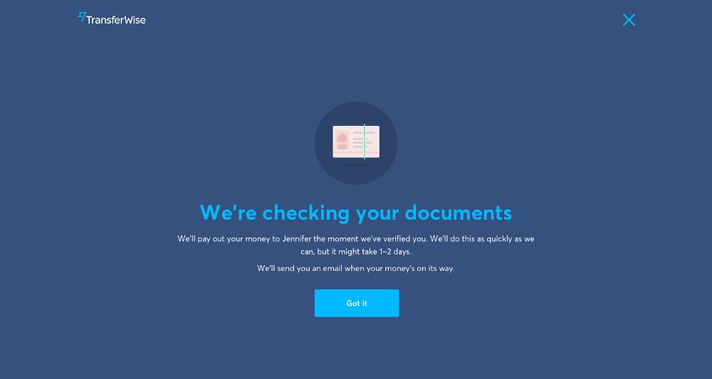 例如,如果用户的帐户验证过程中,他们的转账不能立即处理。在这种情况下,我们必须清晰地表明接下来该怎么做。