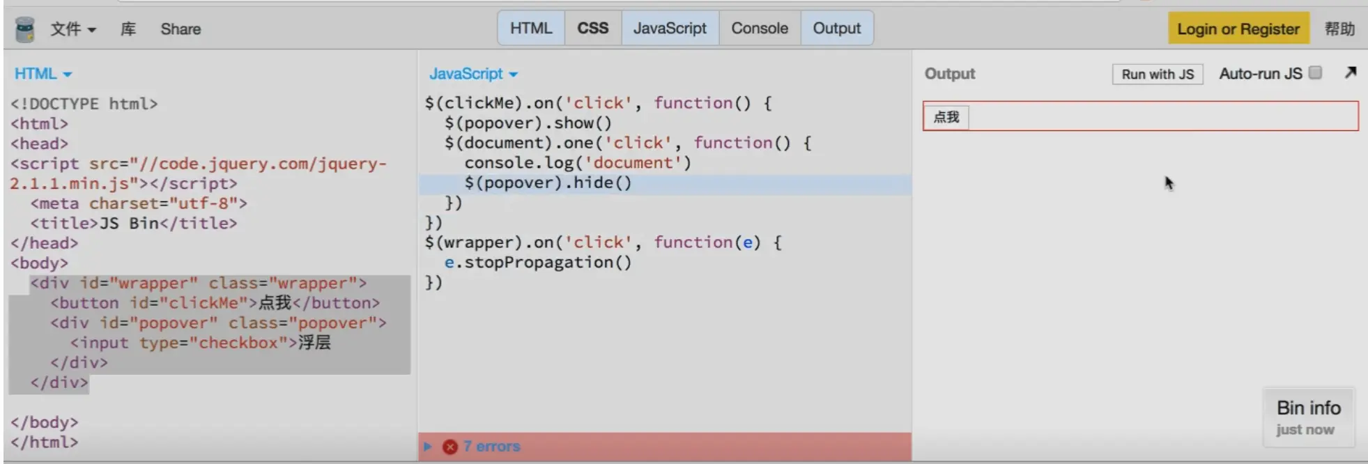 点击关闭浮层