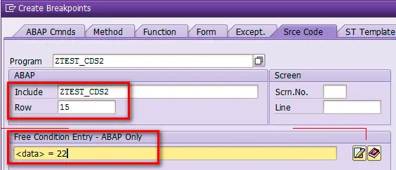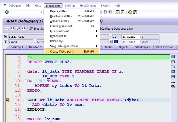 方法1 - 使用ABAP调试器自带的条件断点功能