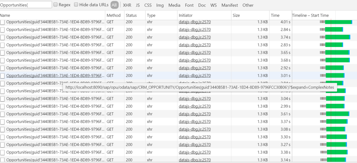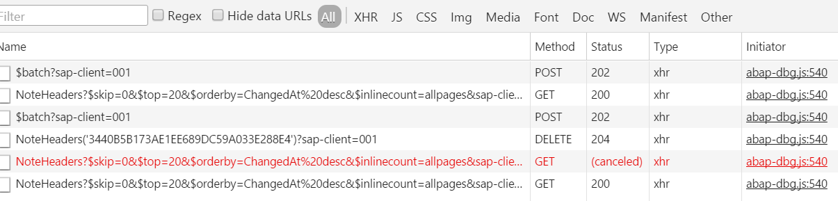 有时我们能在Chrome开发者工具的Network tab里观察到SAP UI5应用会发出某些状态为"取消"的OData请求。如下图第五个请求。