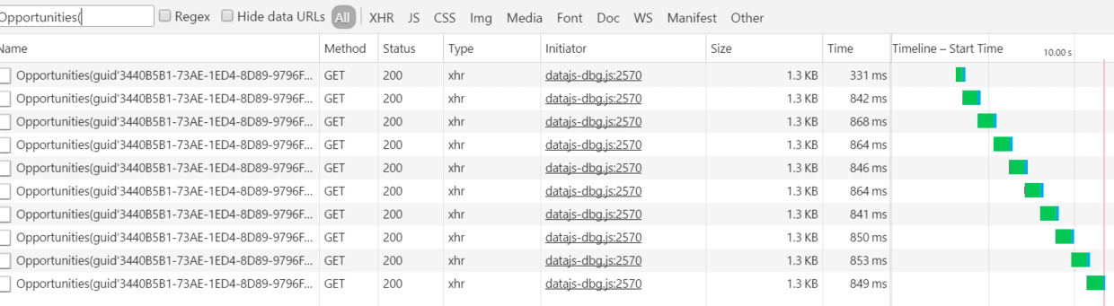 我用代码在for循环里一共发10个OData请求: