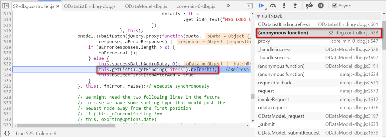 观察产生了被取消的OData请求的应用代码,观察到第523行有这个refresh操作:
