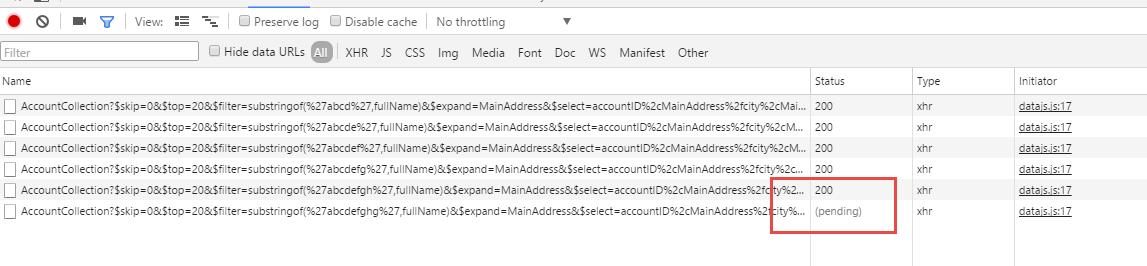 每次在OData Model上发起filter, sort, refresh操作的时候,都会检查是否存在pending的request对象,如果存在未完成的请求,abort掉它: