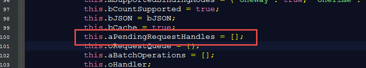 在ODataModel.js中维护了一个http request的pending list,将已经发送但是还没有收到响应的request对象都缓存在这个列表中: