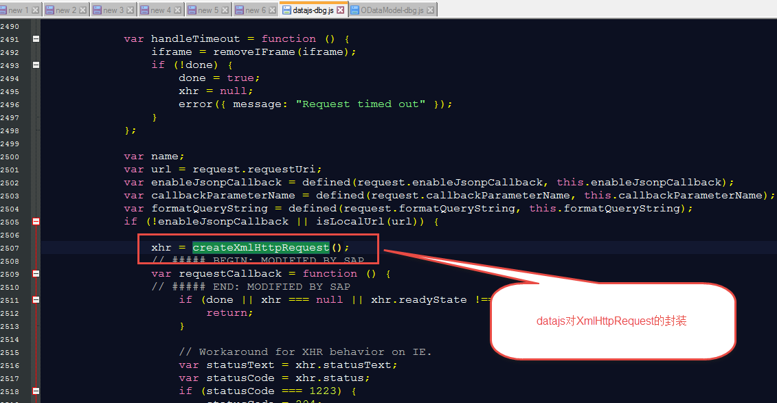 具体实现是UI5中利用了一个第三方的库datajs,datajs最终会调用浏览器的底层http对象XMLHttpRequest: