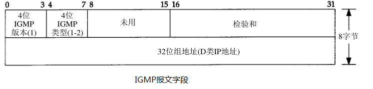 IGMP组管理协议主要用于用于支持主机和路由器进行多播。IGMP也被当作IP层的一部分,IGMP报文通过IP数据报进行传输,有固定的报文长度,没有可选数据(图IGMP报文字段)。多播路由器使IGMP报文来记录与该路由器相连网络中组成员的变化情况。