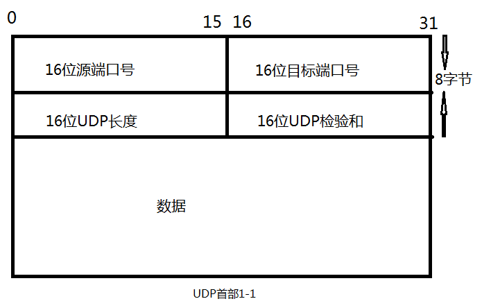 端口号表示发送进程和接收进程,UDP长度字段指的是UDP首部和UDP数据的字节长度,UDP检验和(可选的)覆盖UDP首部和UDP数据,如图所示: