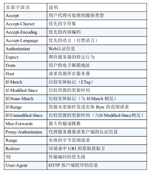 从客户端向服务器端发送请求报文时使用的首部。补充了请求的附加内容、客户端信息、响应内容相关优先级等信息。
