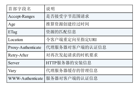 从服务器端向客户端返回响应报文时使用的首部。补充了响应的附加内容,也会要求客户端附加额外的内容信息。