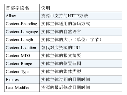 针对请求报文和响应报文的实体部分使用的首部。补充了资源内容更新时间等与实体有关的信息。