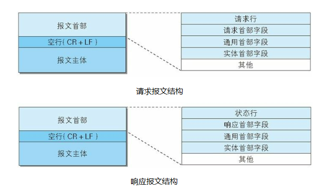 用于HTTP协议交互的信息被称为HTTP报文。请求端(客户端)的HTTP报文叫做请求报文,响应端(服务器端)的叫做响应报文。HTTP报文本身是由多行数据构成的字符串文本,大致可分为报文首部和报文主体两块。