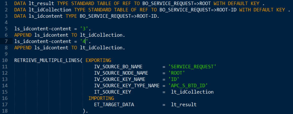 通过比较能发现如果传入retrieve的参数是一个ID的集合,那么编译生成的ABAP代码会调用一个接口为内表的retrieve方法,批量读取数据。
