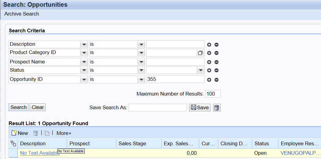 当试图打开一个Opportunity时,
