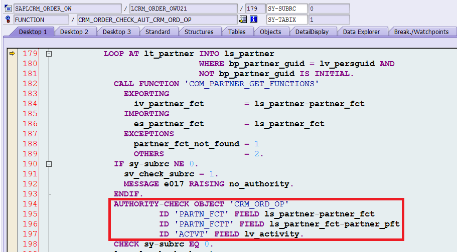 此处会检查当前user的partner function和partner function category的设置情况: