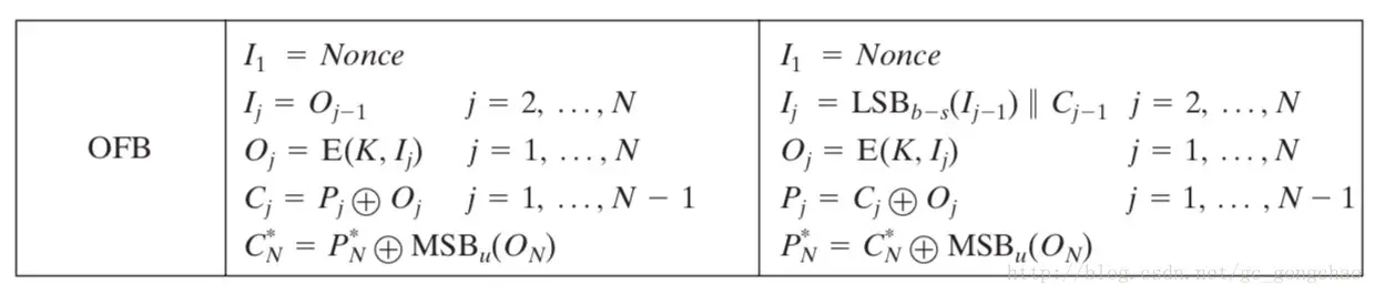输出反馈模式(Output FeedBack,OFB) :输出反馈模式的结构和CFB很相似,它用加密函数的输出填充移位寄存器,而CFB是用密文单元来填充移位寄存器。其他的不同是,OFB模式对整个明文和密文分组进行运算,而不是仅对s位的子集运算。