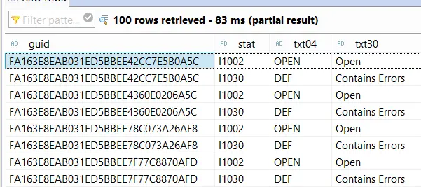 Inner Join测试结果:对于那些在TJ02T里没有维护描述信息的状态,它们不会出现在结果集里。