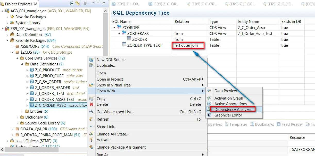 在ABAP Development Studio里预览一个含有association实现的CDS view,能够在工具里发现该association最后是通过Left Outer Join实现的。
