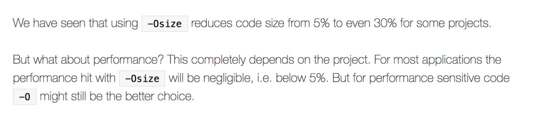 关于 -Osize 的更多介绍,大家也可以看一下 swift.org 这篇 Blog:https://swift.org/blog/osize