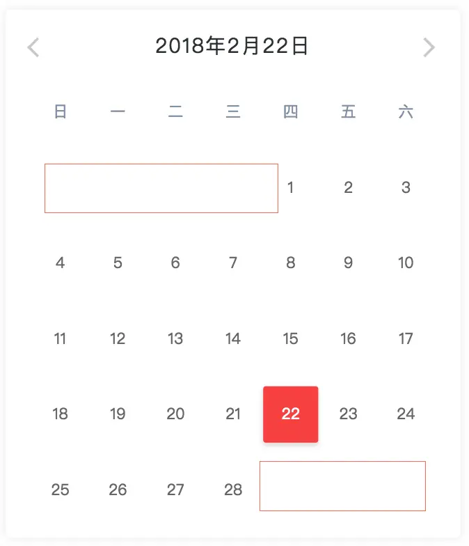 - 2.23修复了2026年2月份会渲染多一行的bug,谢谢@深蓝一人童鞋提出的bug,解决方案是给二月份的日历做特殊处理,new Date(year, month+1, 0).getDay() === 6时不会再渲染后面的日期。