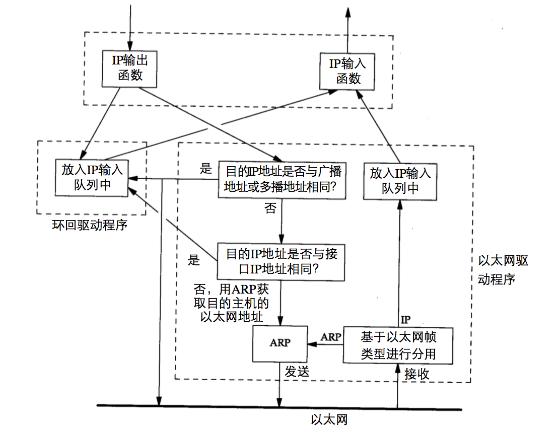 - 传给广播地址或多播地址的数据报复制一份传给环回接口,然后送到以太网上