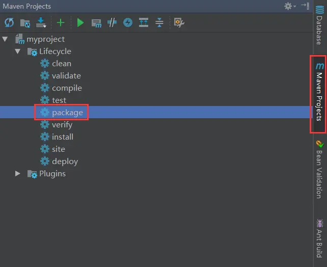 4.使用mvn package命令或IDEA自带的可视化工具加载依赖,本文使用IDEA自带的可视化工具,双击package立即执行依赖加载。