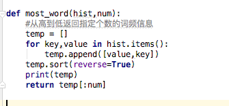 #从高到低返回指定个数的词频信息