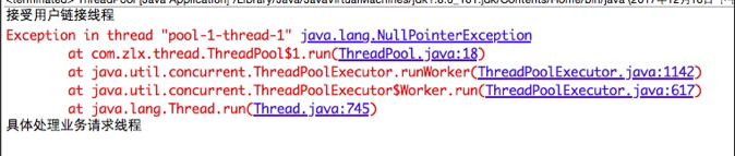 当一个系统中有多个业务模块而每个模块中有都是用了自己的线程,除非抛出与业务相关的异常,否者比如上面抛出的NPE异常,根本没法判断是哪一个模块出现了问题,现在修改代码如下: