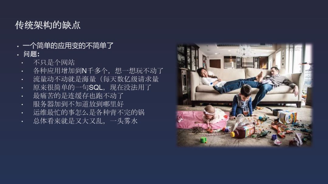 当公司大了之后一定会受到成本结算。OTA的缺点是一个公司看似一个公司,但它其实是一个特种部队,里面集成了各种事业部,互相独立,都很牛逼,但是收他们钱的时候就都没钱。比如在春节这种流量高峰时部了很多服务器,但是春节过后,这些服务器就产生了资源浪费。所以就有了问题,如何让我的代码做到没有流量的时候不要算资源,当流量大的时候又可以自己扩容。这个要求很高,但是对于商业战场来说为什么不可以呢?