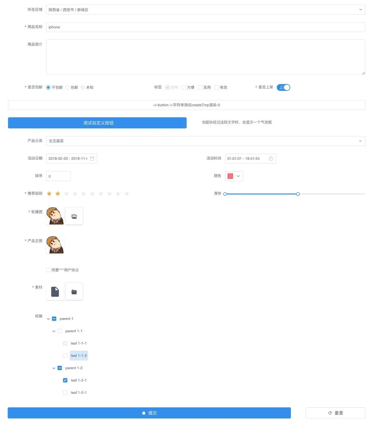 说明: mock() 为表单生成规则 root 为表单插入节点 $f 为表单实例